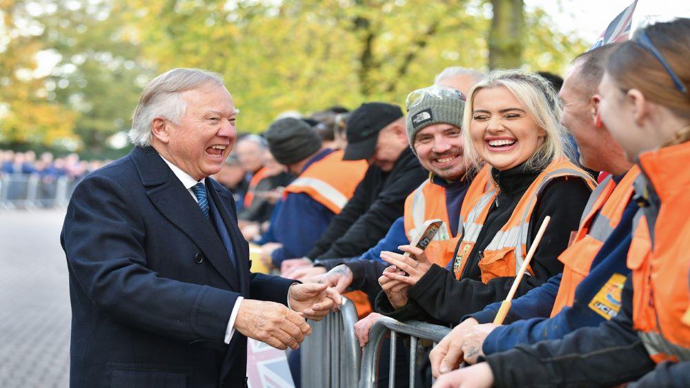 Later, Lord Bamford arrived back at JCB's World HQ, where he was greeted by over 3,500 employees. A spectacular cavalcade of old and newer equipment followed, showcasing the machines he has introduced since becoming Chairman in 1975.